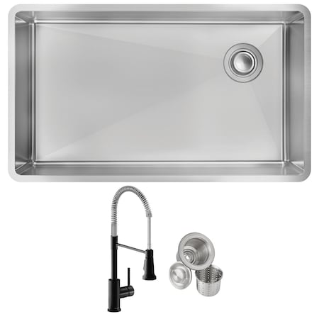 18 Gauge SS 31-1/2" x 18-1/2" x 9" 60/40 Dbl Bowl Undermnt Sink and Faucet Kit w/ Btm Grid and Drain