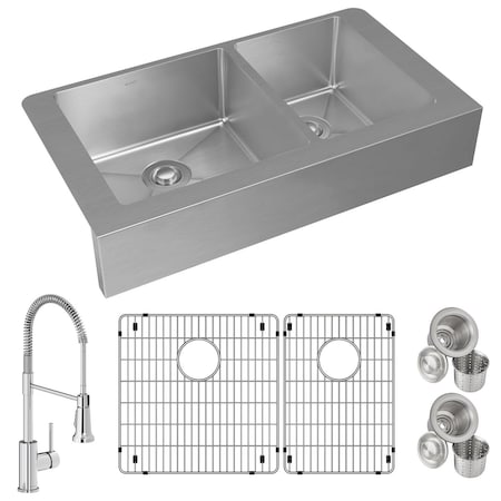 Crosstown 18 Gauge SS 36-1/2" x 18-1/2" x 9" Single Bowl Undermount Sink and Faucet Kit with Drain