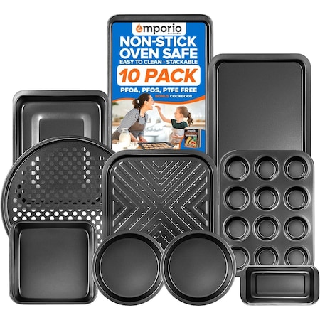 Baking Pan Set, Oven Safe Tray, Up To 450 Deg F, Black, 8PK