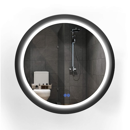 Round LED Mirror for Bathroom, Black Metal Frame, 28in, Tempered, Glass, Wall Mirror