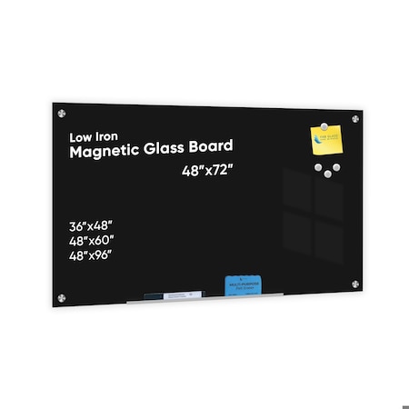 Clear Glass Dry Erase Board for Office & Home, Frameless Black Surface Glass Board 48in x72in Incl