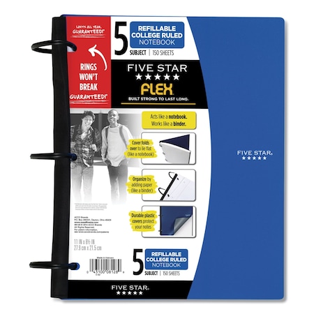 FLEX Notebook, 5-Subject, Medium/College Rule, Randomly Assorted Cover Color, 150 11 x 8.5 Sheets