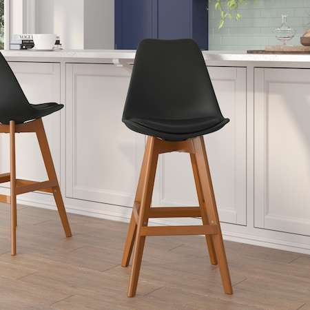 24" Black LeatherSoft Wooden Counter Stools, PK 2