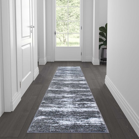 Blue 2' x 7' Abstract Design Accent Area Rug