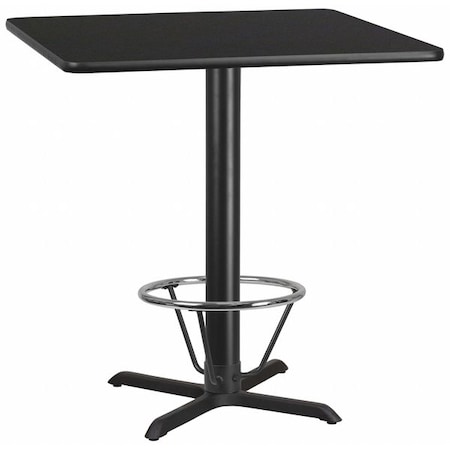 Faux Teak 35" Patio Table-Navy Umbrella & Base