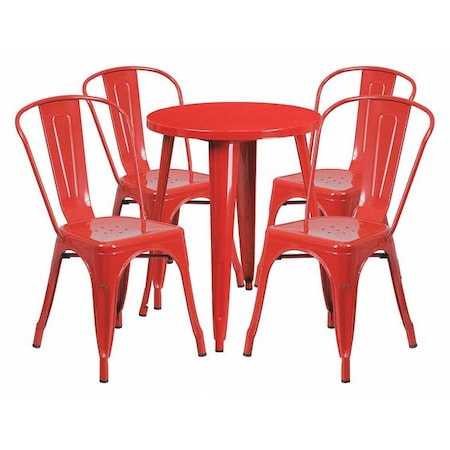 Round Red Metal Table Set, 24RD, 24" W, 24" L, 29" H, Metal, Red