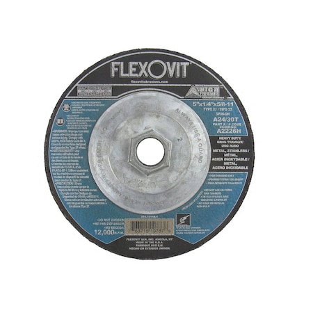 Heavy Duty Depressed Centre Grinding Wheel, 4-1/2 in Dia x 1/4 in THK, 7/8 in Center Hole, C24/30P G