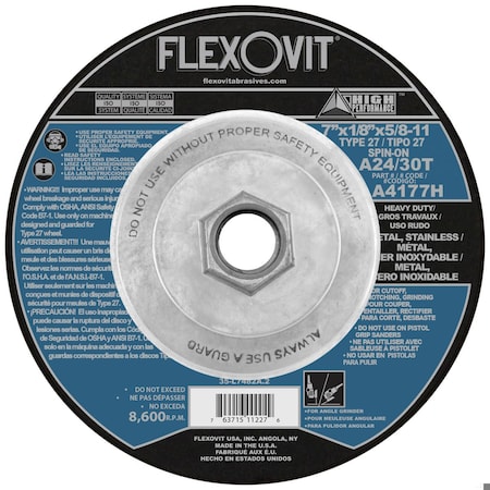 HP Heavy Duty Depressed Center Wheel, 7 in Dia x 1/4 in THK, 7/8 in Center Hole, A24/30T Grit, Alumi
