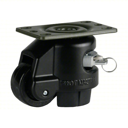 Leveling Caster, 50 mm Nylon Wheel, 2-1/2 x 3-1/4 Plate, Swivel, 280 kg Cap, PU Foot Pad, Black