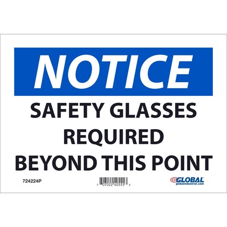Notice Safety Glasses Required, 7x10, Pressure Sensitive Vinyl