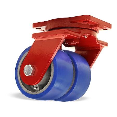 Extra Heavy Duty Dual-Wheel Swivel Caster, 6" x 3" Ergo-Glide Polyurethane (85A) on Cast Iron Wheel