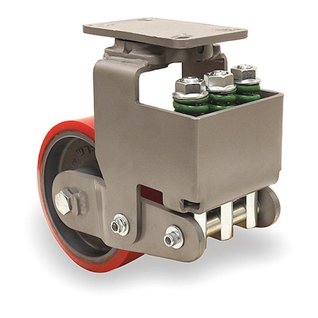 Aerospace Spring Loaded Workhorse Swivel Caster, 6" x 2" Duralast Polyurethane on Cast Iron Wheel