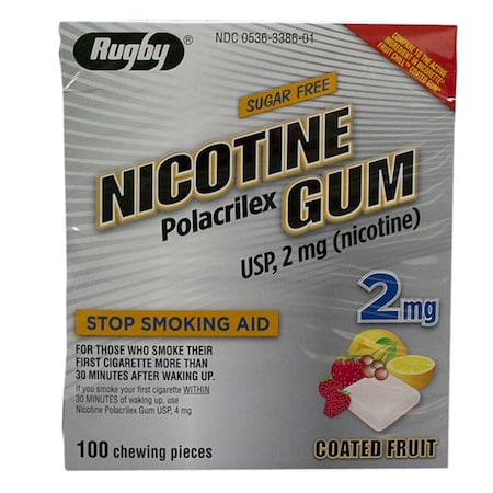 Nicotine Gum, 2mg, Fruit Coated, 100PK