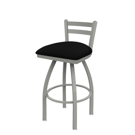 30" Low Back Swivel Bar Stool, Nickel Finish, Black Vinyl Seat