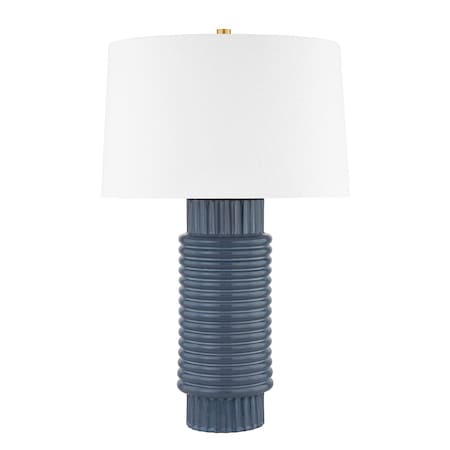 Broderick 1 Light Table Lamp 17 In. Aged Brass/Grey Blue Reactive Ceramic
