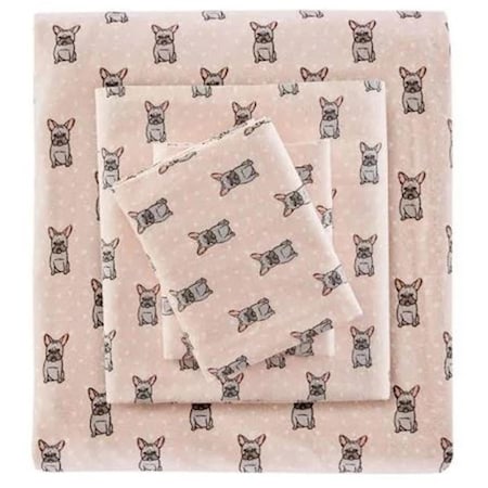 Cozy Flannel Sheet Set, Pink French Bulldog - King
