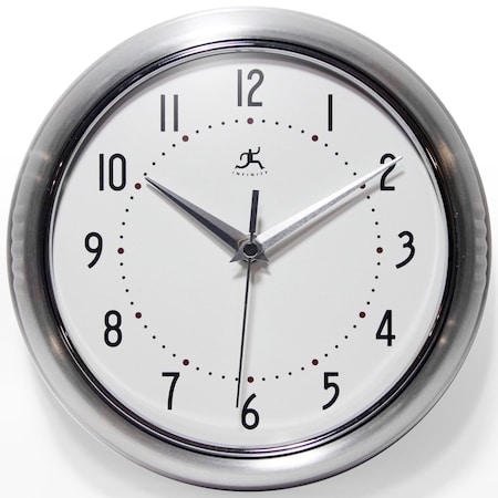 Retro Round Silver - 9.5" Retro Metal Wall Clock