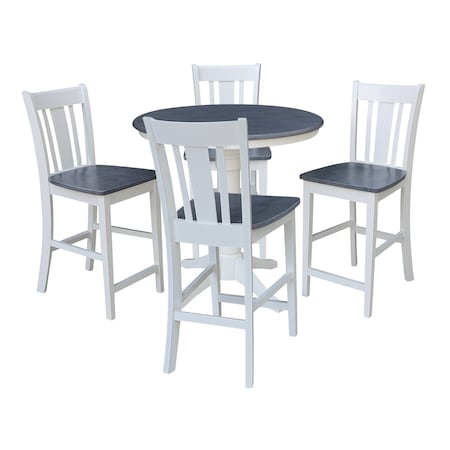 36 in. Solid Wood Round Top Pedestal Counter Height Dining Table w/4 Stools in White/Heather Gray