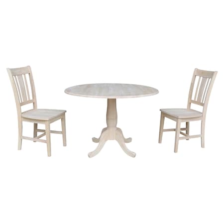 Round 42 in Rd Top Pedestal Table, 2 Chairs, Unfinished, Ready to Finish, 42 in W, 42 in L, Wood