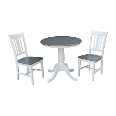 Round 30 in Rd Top Pedestal Table, 2 San Remo Chairs, White/Heather Gray, 30 in W, 30 in L, 29.1 in H