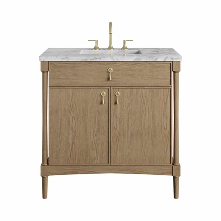Kinnsden 36" Single Vanity, Weathered Oak w/ 3 CM Carrara Marble Top