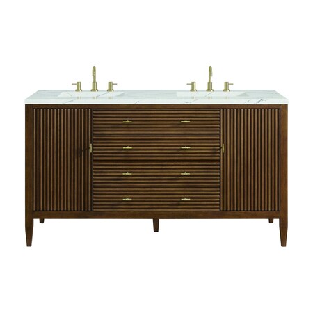 Myrrin 60'' D Vanity, Mid Century Walnut w/ Ethereal Noctis Silestone Top w/ Wireless Charger