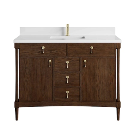 Kinnsden 48" Single Vanity, Sable Oak w/ 3 CM White Zeus Silestone Top