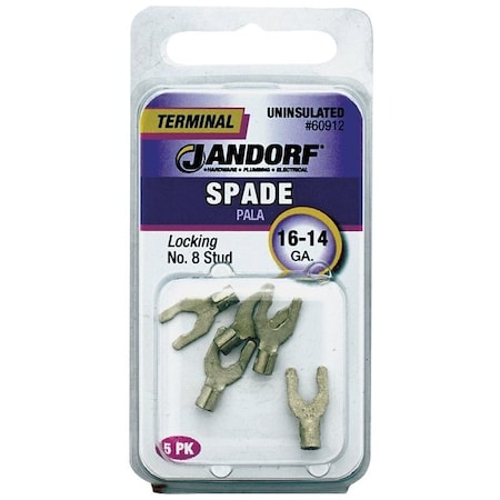 Spade Terminal, 600 V, 16 to 14 AWG Wire, No 8 Stud, Copper Contact, 5PK