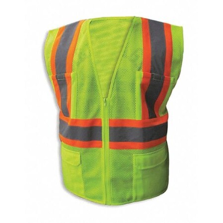 Safety Vest, Lime, Org stripe, Zipper-XL