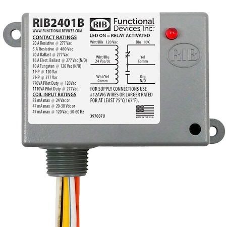 Rib 20Amp Spdt 24 Vac Dc, 120 Vac