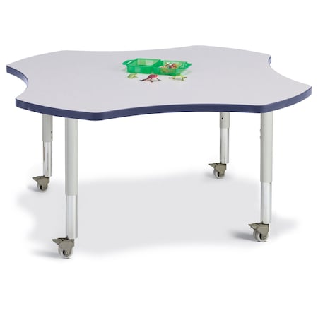 Berries Trapezoid Activity Table, 30 in. x 60 in., E-height, Driftwood Gray/Coastal Blue/Gray