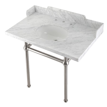 36 Carrara Marble Console Sink with Stainless Steel Legs, Marble WhitePolished Chrome