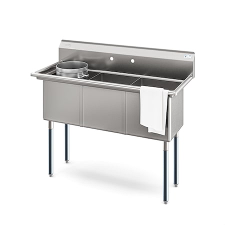 63 in. Three Compartment Sink, Bowl Size 15x15x14, 18-Gauge Stainless-Steel with Right Drainboard