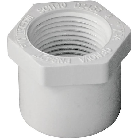 438131 Reducer Bushing, 1 x 34 in, Spigot x FPT, PVC, White, SCH 40 Schedule, 270 psi Pressure