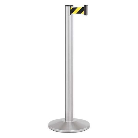 Barrier Post with Belt, Silver, 10 ft Length, 40 in Post Height, No Legend, Satin Chrome