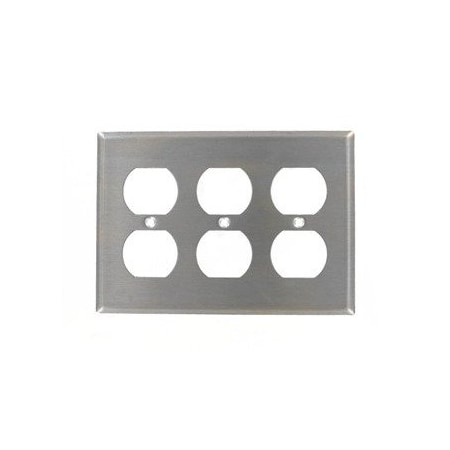 Receptacle Wallplate, Standard Size, Gang 3, Brushed Stainless Steel
