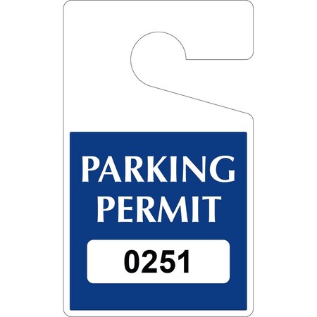 Laminated Hanging Parking Permit Dark Blue 5in x 3in 30mil Plastic Serialized 251-300, 50PK