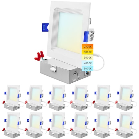 4 Inch Square LED Recessed Can Lights 5 CCT Selectable 2700K-5000K 11W 750LM Dimmable 12-Pack