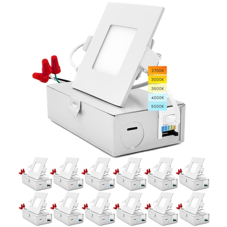 3" Square Ultra Thin LED Recessed Downlights 5 CCT Selectable 2700K-5000K 8W 540LM Dimmable 12-Pack