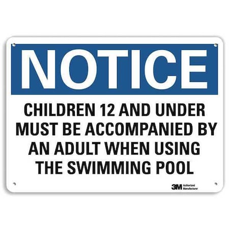 Children 12 and Under Must Be Accompanied By An Adult., 7 in x 10 in, Aluminum, U5-1095-NA_10x7
