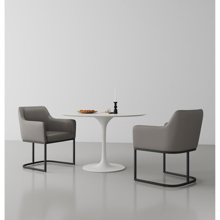 Modern Serena Dining Armchair Upholstered in Leatherette with Steel Legs in Grey, 2PK