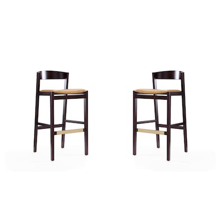 Klismos Barstool in Camel and Dark Walnut (Set of 2)