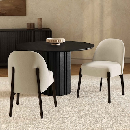 Eloria Wood Chenille Side Chair in Cream - Set of 2