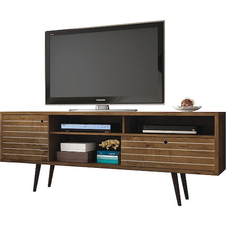 Duane 59.25 Modern Ribbed TV Stand in Dark Brown and Navy Blue