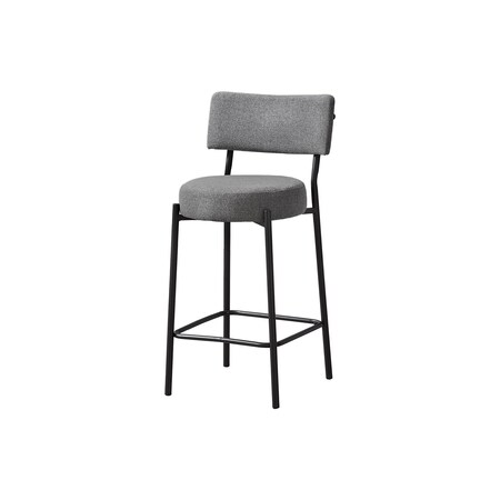 Barstool, Counter Height, Kitchen, Grey Fabric, Black Metal, Contemporary, Modern, 2PK