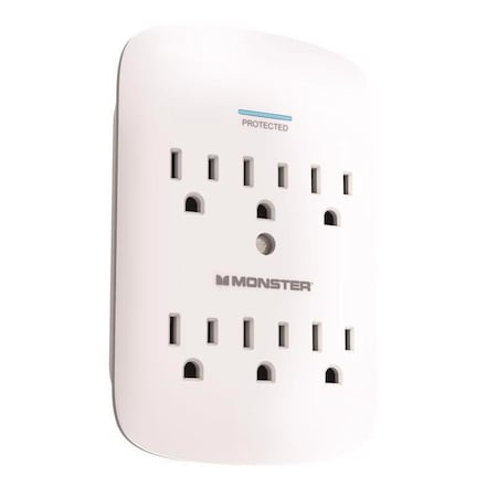 0 ft. L 6 outlets Wall Tap Surge Protector White 1200 J
