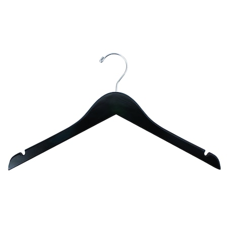 17in Black Plastic Middle Heavy Weight Shirt Hanger w/ Black Hook and Molded Grippers, 100PK
