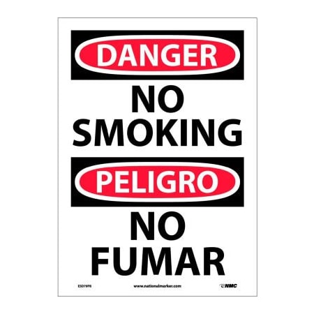 NMC OSHA Sign, Danger No Smoking Matches Or Open Flames, 10in X 14in, White/Red/Black