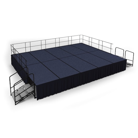 Stage Pack, 16 Ft.x20 Ft.x24"H, Blue Carpet, Shirred Pleat Black Skirting