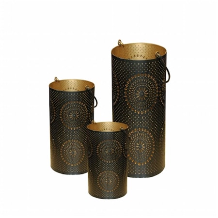 Black and Gold Decorative Floral Cut-Out Pillar Candle Lanterns